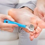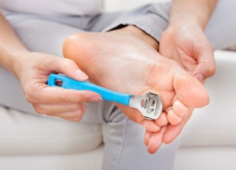 A bladed device used to remove calluses or corns from feet. Available at pharmacies.