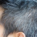 Technical term for gray hair; results from the loss of the hair’s natural melanin pigment.