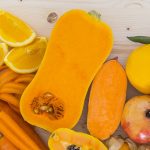 Like flavonoids, a class of phytonutrients, or plant nutrients. Along with flavonoids, they are responsible for the bright colors in vegetables and fruits—in this case yellow and orange. They are antioxidant and have other health benefits.