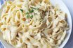In Italian a large strip of something is called afetta, a little strip of something is called afettucina, and many little strips of something are called fettuccine. For this reason, a bowl full of little strips of pasta came to be called fettuccine. The particular dish known as fettuccine Alfredo—or technically fettuccine all’Alfredo—takes the last…