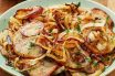 Cooked in a style of food prepared in a region of France famed for excellent onions.