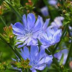 Chicory is a type of salad green with curly leaves and bright blue flowers. It has a bitter taste and is often mixed with other greens in salads. The large roots of chicory are roasted, ground, and blended with coffee to add a bitter flavor to it.