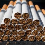 A roll of finely cut tobacco or marijuana for smoking, typically enclosed in thin paper.