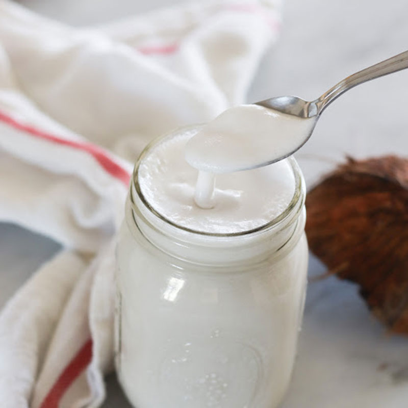 Made from grating the white flesh of the coconut and mixing with a cup of water.