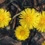 A perennial, yellow flowered herb Tussilago farfara, used traditionally to treat asthma, cough, and other respiratory ailments. Some research suggests it is carcinogenic.