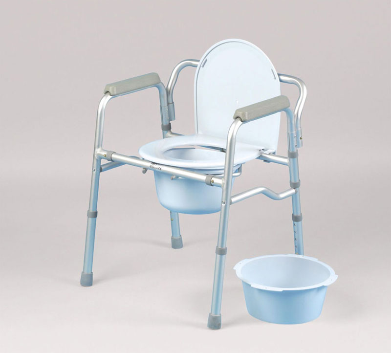 A special chair with a removable basin used as a toilet by people with limited mobility.