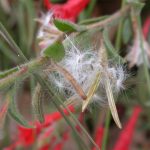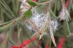 With a tuft of hairs at the apex of a seed or at the base of a floret in a grass spikelet.