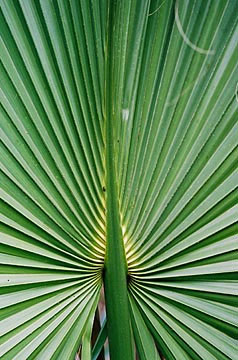 A basically palmate leaf in which the petiole extends into the lamina as a well-defined ‘axis’, the costa, which effectively divides the lamina in two (specialist term in Palmae, 1986).