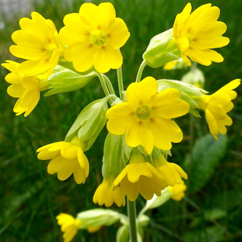 Proverbial wildflower of England, loved for its fragrant golden-yellow blossoms. Old remedy for insomnia and headache, as flowers possess sedative and nerve strengthening properties. Cowslip wine, a delicate dessert wine, has long been made from cowslip pips.
