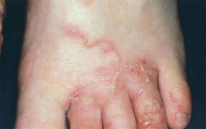 The foot can be afflicted by a peculiar occurrence characterized by the presence of pruritic and erratic red lines. These distinctive patterns are formed as a result of larvae from the hookworm family and certain types of roundworms burrowing beneath the skin.