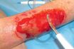 Removal of non-healthy tissue and foreign material from a wound or burn to prevent infection and permit healing.