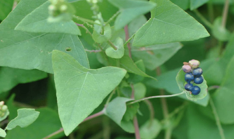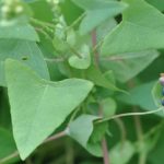 Triangular in shape, though commonly with rounded corners, usually with the stalk joining the blade at the center of the base.
