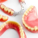 An artificial replacement for missing natural teeth and adjacent tissues in the upper jaw, the lower jaw, or both. Dentures are made of a strong acrylic resin, sometimes in combination with various metals. Partial dentures replace one or several missing permanent teeth, and a full denture (false teeth) replaces all the teeth. Saving the permanent teeth may be impossible if a person has serious periodontal disease or Severe tooth decay, although some teeth can be saved by a root canal treatment and dental crown.