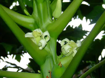 With flowers of two different sexual ‘types’: male and female, female and bisexual or male and bisexual.