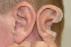 Fixed/removable artificial replacement for all or part of a human ear. Called also auricular prosthesis.