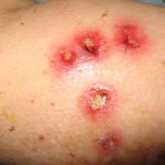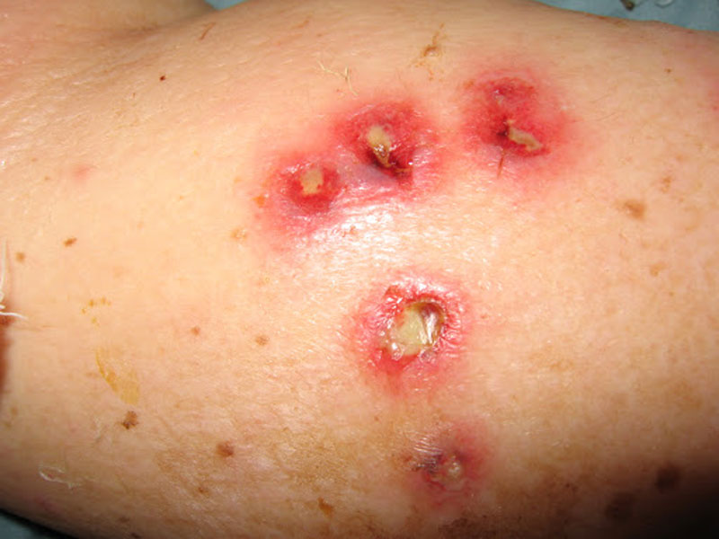 In debilitated or immunosuppressed subjects, staphylococcal impetigo or folliculitis (inflammation of hair follicles may become ulcerated. This is called ecthyma and is seen in vagrants, drug addicts, and individuals with AIDS/HIV or uncontrolled diabetes mellitus.
