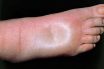 Excessive accumulation of fluid in the body tissues: popularly known as dropsy. The resultant swelling may be local, as with an injury or inflammation, or more general, as in heart or kidney failure In generalized edema there may be collections of fluid within the chest cavity (pleural effusions), abdomen, or within the air spaces of the lung (pulmonary edema). It may result from heart on kidney failure, cirrhosis of the liver, acute nephritis, the nephrotic syndrome, starvation, allergy, or drugs (e.g. phenylbutazone or cortisone derivatives). In such cases the kidneys can usually be stimulated to get rid of the excess fluid by the administration of ‘diuretic drugs. Subcutaneous edema commonly occurs in the legs and ankles due to the influence of gravity and (in women) before menstruation; the swelling subsides with rest and elevation of the legs.