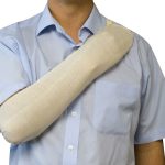 A sling tied round the neck, used to hold an injured hand or arm in a high position to control bleeding.