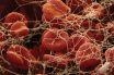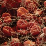 Clump that results from coagulation of the blood after a sequential process by which the multiple coagulation factors of the blood interact in the coagulation cascade. Essentially composed of fibrin, this insoluble protein is formed from fibrinogen by the proteolytic action of thrombin. Called also a blood clot.