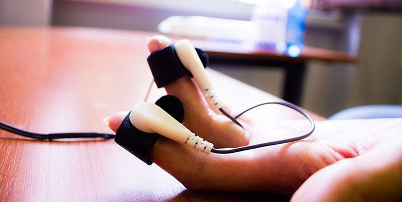 The electrical resistance of the skin in response to changes in a person’s emotional state.