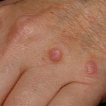 A diseased growth characterized by a mass of granulation tissue (tissue that develops in a wound during the healing process). Types of granuloma include granuloma annulare, granuloma inguinale, and pyogenic granuloma. In granuloma annulare, round (annular) skin lesions resembling ringworm most commonly appear on the hands and feet. Treatment is typically with prescription corticosteroid creams or ointments. In severe cases, the doctor will prescribe oral medications. Granuloma inguinale, one of the sexually transmitted diseases (STDs), causes the erosion and destruction of genital tissue. This disease, commonly found in tropical areas, is rare in the United States. In pyogenic granuloma, small, elevated, vascular lesions appear on the skin following an injury. Although harmless, they bleed easily. Many disappear without treatment, while others must be removed using a method such as cauterization, freezing, or lasers.