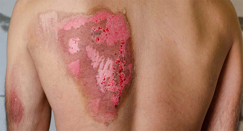 Injury caused by exposure to dry heat sufficient to damage the skin. Heat burns, also called thermal burns, can have many causes, including contact with an open flame, hot objects, explosions, and the sun. Heat burns are classified according to degree of severity. About 2 million people in the United States receive burns each year; 300,000 of them are serious injuries. Burns are the third-largest cause of accidental death in the United States.
