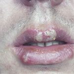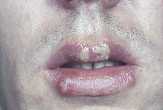 A form of HSV‐1 recurrent infection found on the vermillion border of the lips. Commonly called cold sores or fever blisters.