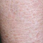 A condition characterized by dry, rectangular scales on the skin that is most pronounced on the legs. Ichthyosis vulgaris is the result of a hereditary skin defect that causes excessive accumulation of scales on the skin. Symptoms vary in severity. Mild cases cause primarily cosmetic problems. More serious ichthyosis leads to painful, bleeding cracks in the skin that can become infected if left untreated.