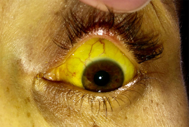 Yellow coloration of the conjunctivae which makes the sclerae also appear yellow.