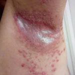 Inflammation of the skin caused by the friction of two surfaces rubbing against each other is called intertrigo. It’s frequently seen in individuals who are overweight. The inflamed skin appears red, damp, and might emit an unpleasant smell. Often, it’s coexisting with fungal infections like candidiasis and can exhibit scaling or blistering. The condition can exacerbate with increased perspiration.