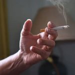 Inhaling air containing tobacco smoke produced by other persons who are smoking. It is also called passive smoking.