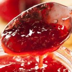 A viscous or semi-solid food made with 45 parts by weight of saccharine ingredient. Spices, acidifying agents, pectin, buffering agents, preservatives and anti-foaming agents, except those derived from animal sources may be added.