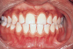 A deteriorating periodontal disease found in adolescents in which the periodontal damage is greater than what would normally be expected when considering the localized irritating factors found on adjacent teeth. Inflammatory changes become excessive, leading to observed bone loss, tooth migration, and/or extrusion. Juvenile periodontitis is now called aggressive periodontitis.