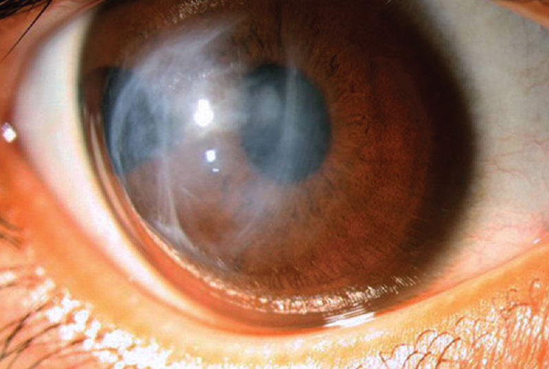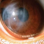 A congenital disorder of the eye in which the whole cornea bulges forward in a regular curve.