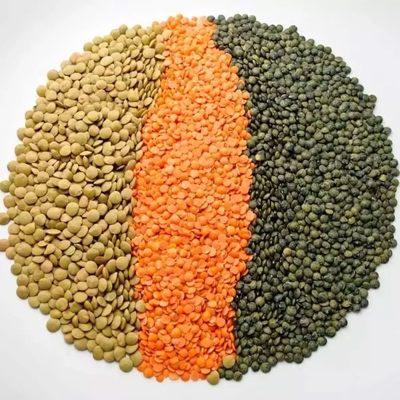 A diminutive and pale-colored legume that bears a resemblance to a flattened pea. Lentils are highly nutritious and affordable, and are commonly employed in Indian and European cuisine.