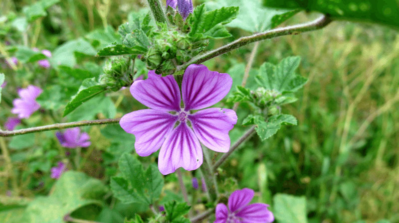 A member of the moderately large plant family Malvaceae, though more narrowly of some of its herbaceous genera allied to Malva. A feature of the family (to which hibiscuses also belong) is the presence of a slimy mucilage layer under the very tough bark, often with mucilage also in leaves and roots. Marsh mallow is Althaea officinalis, its mucilage used in the original marshmallow.