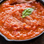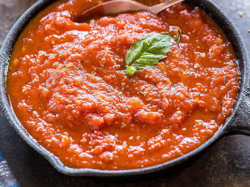 Consists of tomatoes, basil, onions and garlic sauteed in olive oil. May contain carrots, oregano, mushrooms and tomato paste. This sauce is used to embellish fresh pasta, frozen sandwiches and entrees made up of meat, chicken or fish.