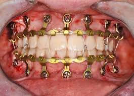 A temporary fixed connection of the maxillary and mandibular teeth, typically with wire, for use in treating a mandible fracture.