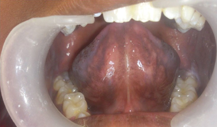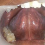 Patches of pigmentation on the oral mucosa.