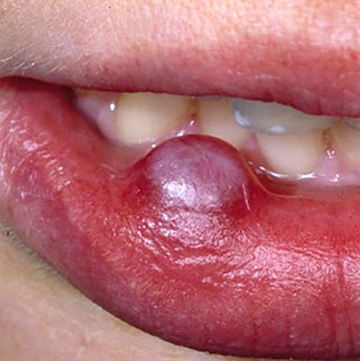 A swollen sac or cavity filled with mucus secreted from cells in its inner lining. Also known as mucus cysts, mucoceles consist of clear fluid trapped beneath a thin layer of mucous membrane. They usually appear on the inner surface of the lips. Although mucoceles are harmless and usually painless, they can be bothersome. Treatment may involve surgery.