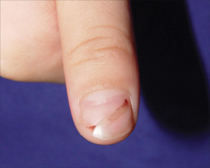The separation and falling off of a nail plate from the nail bed; affects fingernails and toenails.
