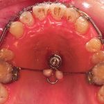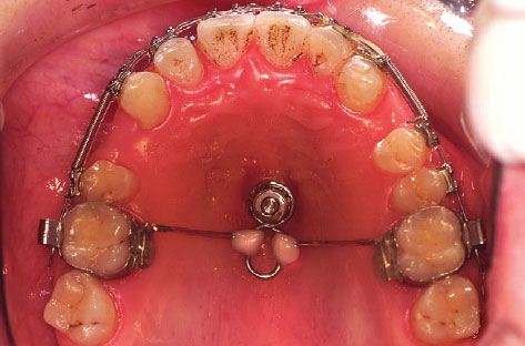 Dental implant placed in the midsagittal area of the maxillary hard palate for use as anchorage in orthodontic treatment.