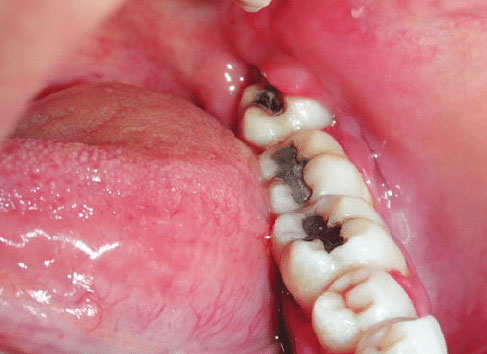 A localized purulent infection within the tissue surrounding the crown of a partially erupted tooth.