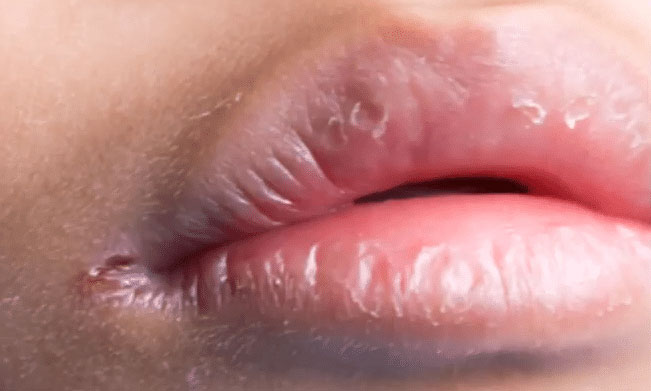 Dryness and cracking of the corners of the mouth, sometimes with infection. Perleche may be caused by persistent lip licking or by a vitamin-deficient diet.