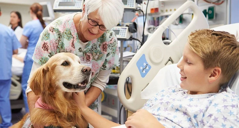 The use of tranquil domestic animals (e.g., dogs and cats) to provide comfort and solace to patients with dementia or major psychiatric disorders during visits conducted by a person overseeing the animals.
