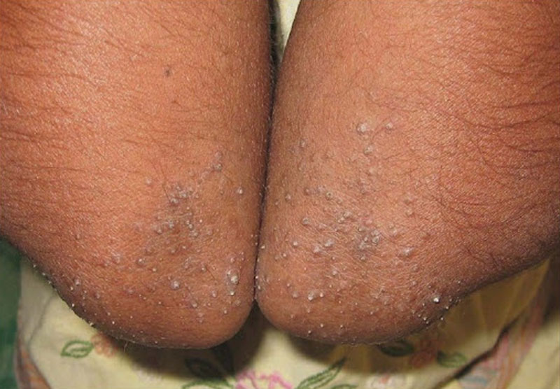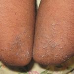 Blocked pores or ‘toad-skin’ (follicular hyperkeratosis of the skin) often encountered in malnourished people. Originally thought to be due to vitamin A deficiency but possibly due to other deficiencies, and also occurs in adequately nourished people.