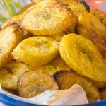 A relative of the banana with very thick peel and much larger in size. The flesh is deeper yellow and may be eaten cooked unripe as one would eat a potato. When the peel turns black it is ripened and is very sweet.