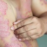 Chronic skin disorder characterized by periods of remission and exacerbation of dry, scale-covered red patches especially on the scalp, ears, genitalia, and skin over bony prominences; a type of arthritis may occur with the skin disorder. Treatment includes corticosteroids, ultraviolet light, and the use of medicated creams and shampoos.