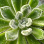 (Of cap or stem) Covered with fuzz or hair-like material.