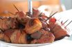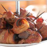 An exotic hors d’oeuvre made with chicken livers and water chestnuts and wrapped in bacon. Rumaki originated in Japan and is popular in Hawaii and the West Coast of USA.